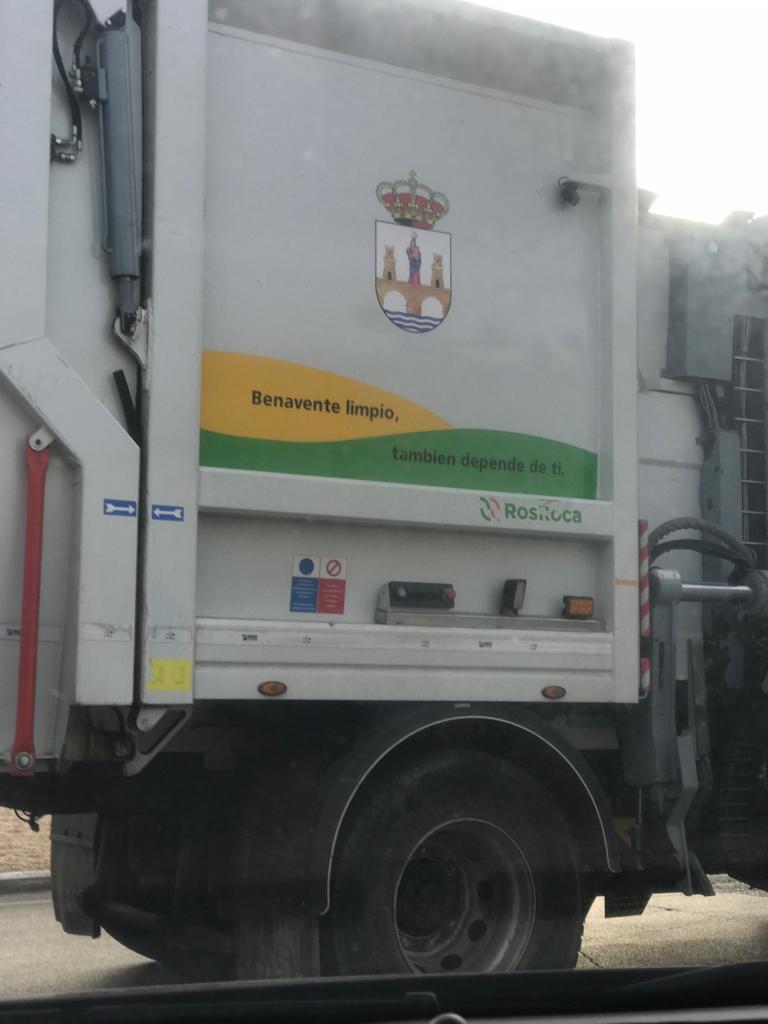 Pero, como decíamos antes, los astorganos están descolocados al ver como es un camión rotulado con el escudo y nombre del Ayuntamiento de Benavente, es el vehículo que está realizando la recogida de basura en la ciudad, y se realizan diversas preguntas: